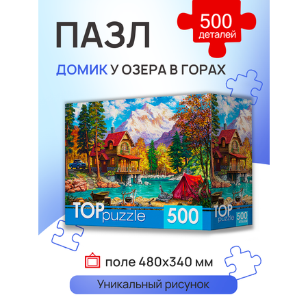 Пазл Рыжий кот TOPpuzzle Домик у озера в горах ХТП500-6819. 500 элементов
