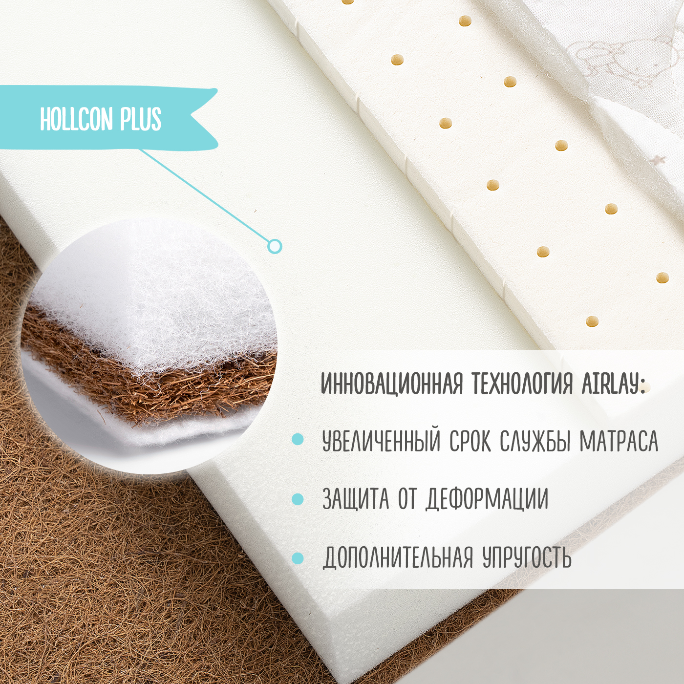 Hollcon Plus сохраняет форму в течение многих лет и отлично проветривается.