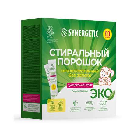 Стиральный порошок SYNERGETIC - экологичный, безопасный, универсальный, гипоаллергенный и эффективный суперконцентрат в стиках.