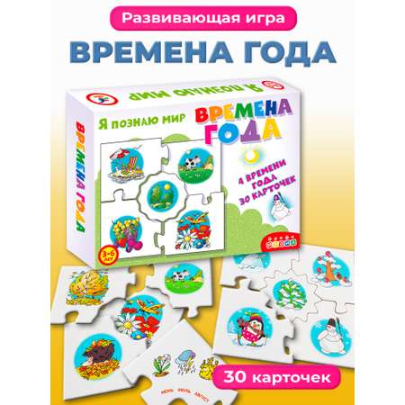 Игра представляет собой набор карточек-пазлов. Задача игрока - собрать вокруг центральной карточки с изображением одного из времён года четыре карточки с явлениями, характерными для этого периода. Элементом самопроверки служат пазловые замки – если карточки подобраны неверно, то они не присоединятся. Это позволяет ребёнку самостоятельно оценить правильность своего решения.