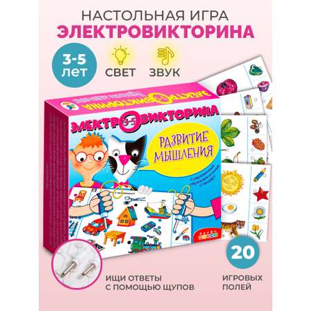 Настольная игра для детей 3-5 лет Электровикторина Развитие мышления – это интерактивная игра, которая способствует всестороннему развитию ребенка и пробуждают интерес к знаниям, учит анализировать, сравнивать предметы и явления, принимать самостоятельные решения и обосновывать свой выбор.