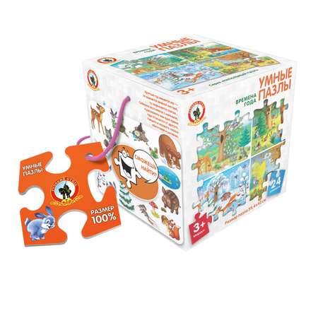- Отличный пазл. Покупала ребенку 2,5 лет. Очень удобно, что можно собирать отдельно каждое время года (по 6 деталей ребенку не так сложно собрать картинку) и соединить целиком пазл. Картинка получается большая. У нас 3 пазла этой серии, очень любит их собирать.