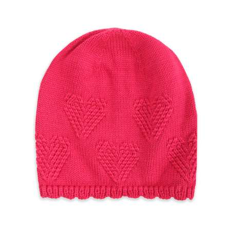 Поверхность шапки декорирована вязаными сердечками.