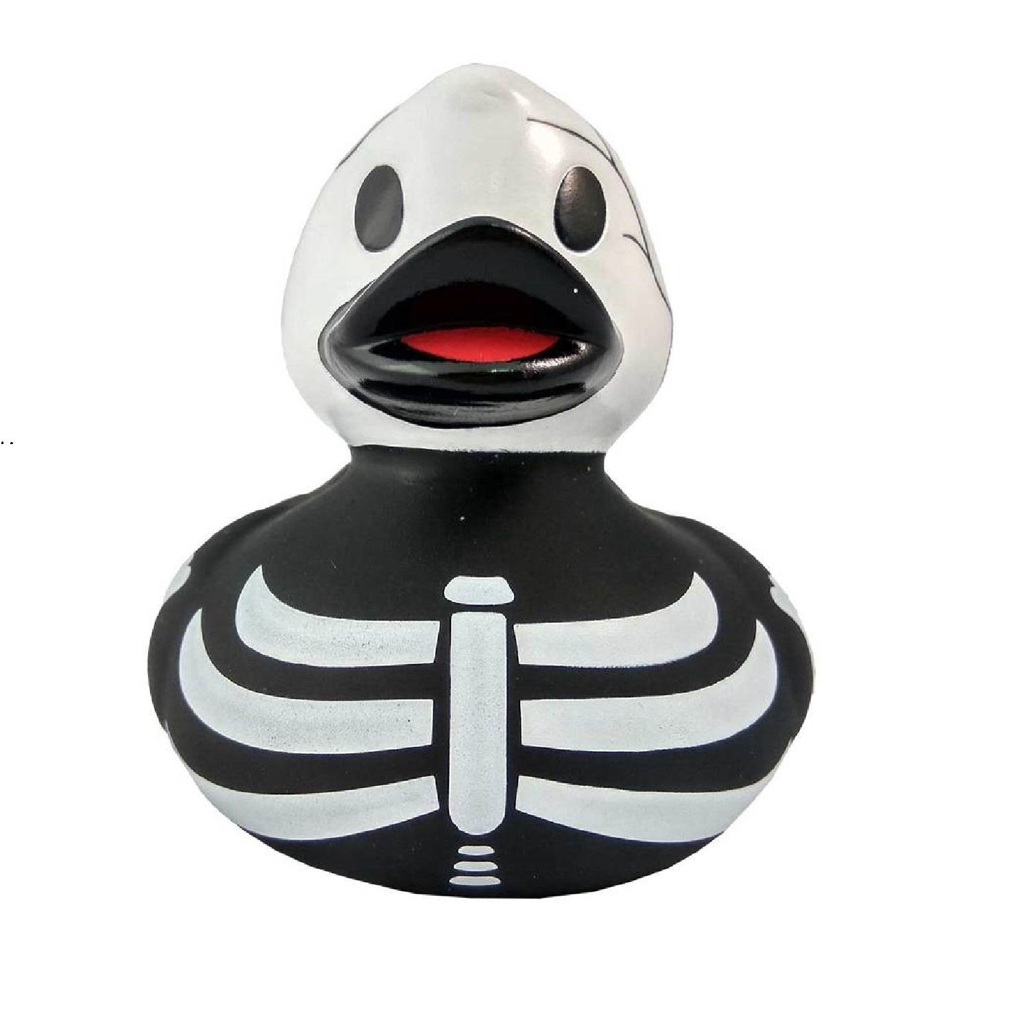В арсенале карнавального убранства для Хэллоуина костюм скелета – совсем не новинка. Вопрос лишь в том, способна ли эта жизнерадостная уточка-скелет хоть кого-нибудь испугать. Сомнительно! Скорее всего, такая игрушка станет не только экспонатом «утиной» коллекции, но и забавой для ребенка-подростка, желающего выделится своим внешним видом и домашней коллекцией необычных предметов. Резиновая желтая уточка - всемирно известная классическая игрушка для ванной. В дополнении к стандартной игрушке предлагаем более 100 дизайнерских уток-персонажей. Рекомендованы для детей от 3-х лет, изготовлены из безопасных, нетоксичных материалов и соответствуют сертификату ТР ТС. Предназначены для игр в воде, на улице или дома; для использования в качестве аксессуара интерьера или сувенира. При нажатии издают негромкий пищащий звук. В первую очередь наши дизайнерские уточки - это яркий сувенир интересной формы. Часть уточек за счет более простой формы способна плавать, сохраняя вертикальное положение, как обычная уточка. Уточки более оригинальных форм так же могут использоваться при купании и водных играх, но держаться на поверхности вертикально не способны. При покупке специального грузила для уточек любая уточка может прекрасно плавать и не переворачиваться даже при активной игре. Приблизительные размеры уточек 8,5 см х 8,5 см, вес - 50 гр.