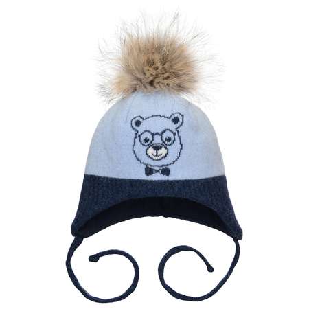 Зимняя шапка на завязках для мальчика Kotik (котик) с натуральным помпоном