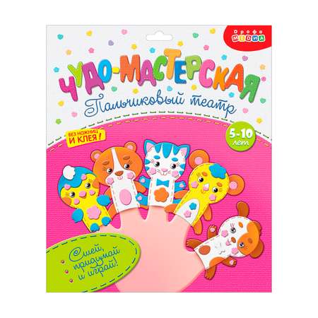 Пальчиковый театр, созданный своими руками, — интересная и уникальная развивающая игра. В одном комплекте — пять куколок-животных. Чтобы сшить две заготовки-основы между собой, ребёнку может потребоваться помощь, зато всё остальное он сделает сам — украсит животных полосками или пятнами, приклеит глазки, нарисует ротики и реснички. Игра в пальчиковый театр незаметно развивает мелкую моторику, сенсорное восприятие, речь и воображение. В наборе: — 5 основ из фетра с выкройками куколок, — детали из фетра на самоклеящейся основе, — пластмассовые глазки (10 шт.), — цветные нитки. Возраст: 3—8 лет. Размер фигурки: 6,5х9 см.