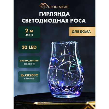 Цена на Светодиодная гирлянда NEON-NIGHT Роса 2 м свечение мультиколор 303-009-1 - 239 ₽.