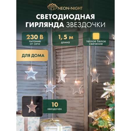Светодиодная гирлянда NEON-NIGHT Звезды 1.5х0.6 м тепло-белое свечение 303-030