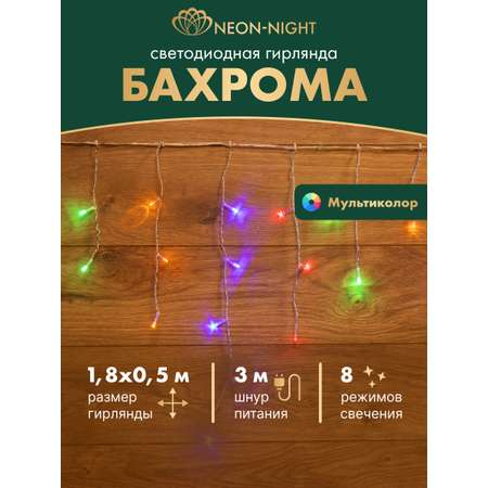 Светодиодная гирлянда NEON-NIGHT Бахрома 1.8х0.5 м 8 режимов свечение мультиколор 255-019