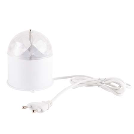 Светодиодная настольная/напольная Диско-лампа от NEON-NIGHT подойдет для организации настоящей вечеринки прямо у Вас дома! Изделие представляет собой уникальное устройство для создания эффекта цветомузыки с помощью динамического вращения потока разноцветных лучей. Пластиковый белый корпус с прозрачным преломляющим куполом скрывает внутри компактный мотор. Пространство между крышкой и основанием обеспечивает вращение подвижной части изделия. Специальные отверстия в корпусе позволяют закрепить диско-лампу на стену или даже на потолок. Используемые светодиоды имеют бесспорное преимущество перед ламповыми, поскольку ресурс светодиодов составляет 100 000 часов. Не ограничивайте себя в выборе места Вашей дискотеки: лампа помещается в любую сумку или рюкзак. Лампа оборудована белым проводом с евровилкой для подключения к сети 220 В.