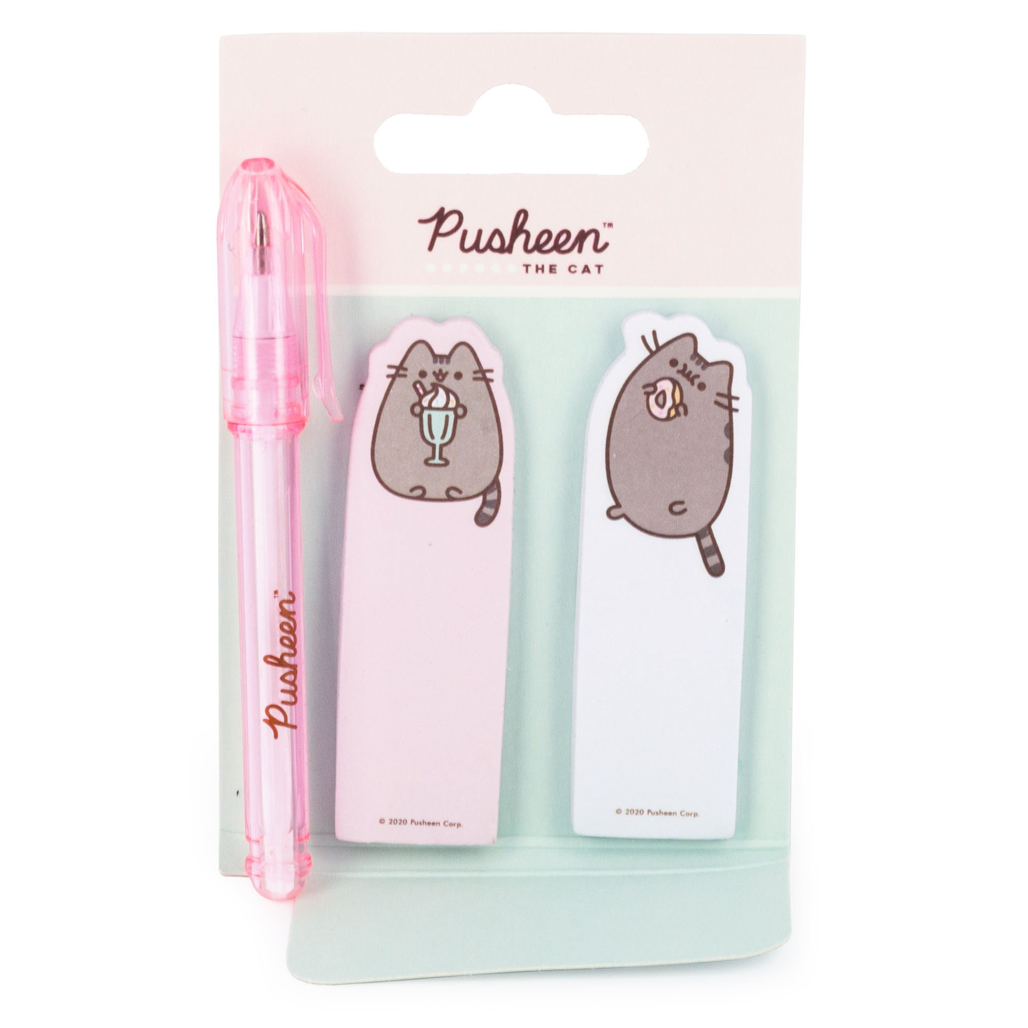 Набор состоит из мини ручки и стикеров для заметок с изображением популярной кошки Pusheen.