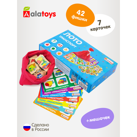 Лото детское деревянное (7 карточек, 42 фишки) Алатойс Настольная игра Монтессори для малышей "ТРАНСПОРТ"