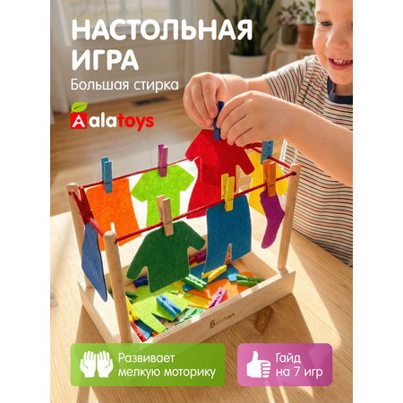 Настольная игра БОЛЬШАЯ СТИРКА (38 деталей) + гайд с 7 играми Алатойс Монтессори с прищепками развивающая игра