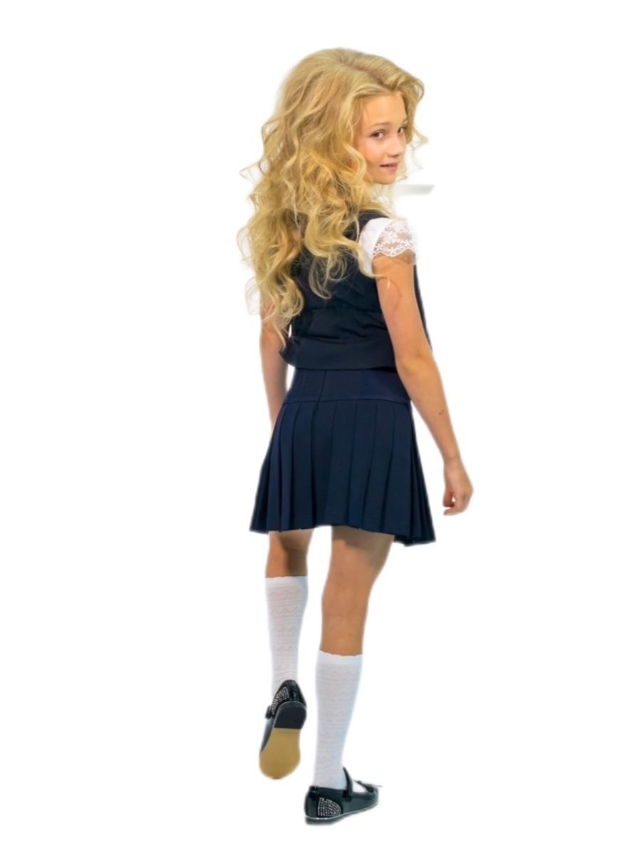 Юбка в школу для девочки iQ-form, с эффектом поясничного стабилизатора, юбка-плиссе синяя застегивается на молнии, впереди имитация пуговиц. Юбка в складку имеет высокую посадку со вставками по бокам из эластичного материала, что делает ее универсальной под любую фигуру ребенка. Юбка на резинке мини выше колена прекрасна, как нарядный вариант или повседневный как школьная форма с жилетом арт. SH1504GV.