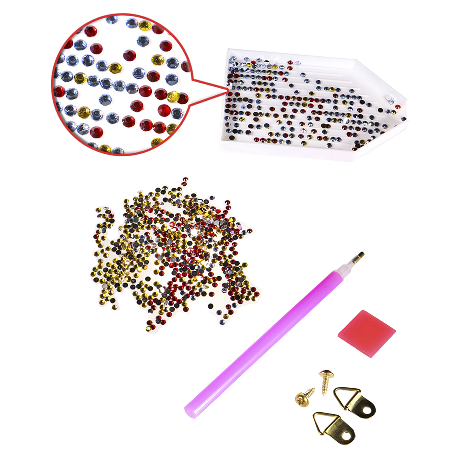 Такое хобби способствует развитию зрительного восприятия, воображения, усидчивости и мелкой моторики. Состав набора: самоклеящаяся основа размером 30x40 см, стразы, контейнер для страз, карандаш-стилус, клеевая подушка, крепеж, схема.