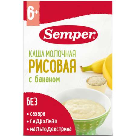 Цена на Каша сухая молочная Semper рис-банан 180г с 6месяцев - 499 ₽.