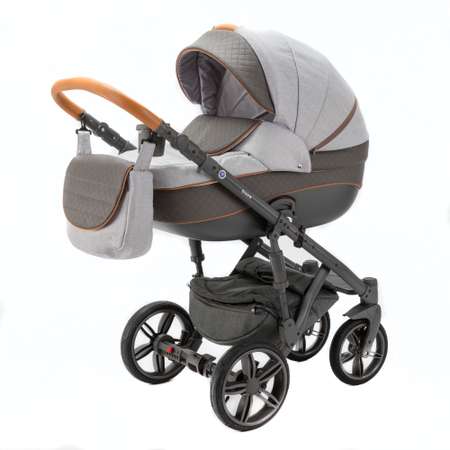 Коляска 3в1 Adamex Encore X4 Светло-серый с темно-серой перфорированной кожей и карамельной отделкой
