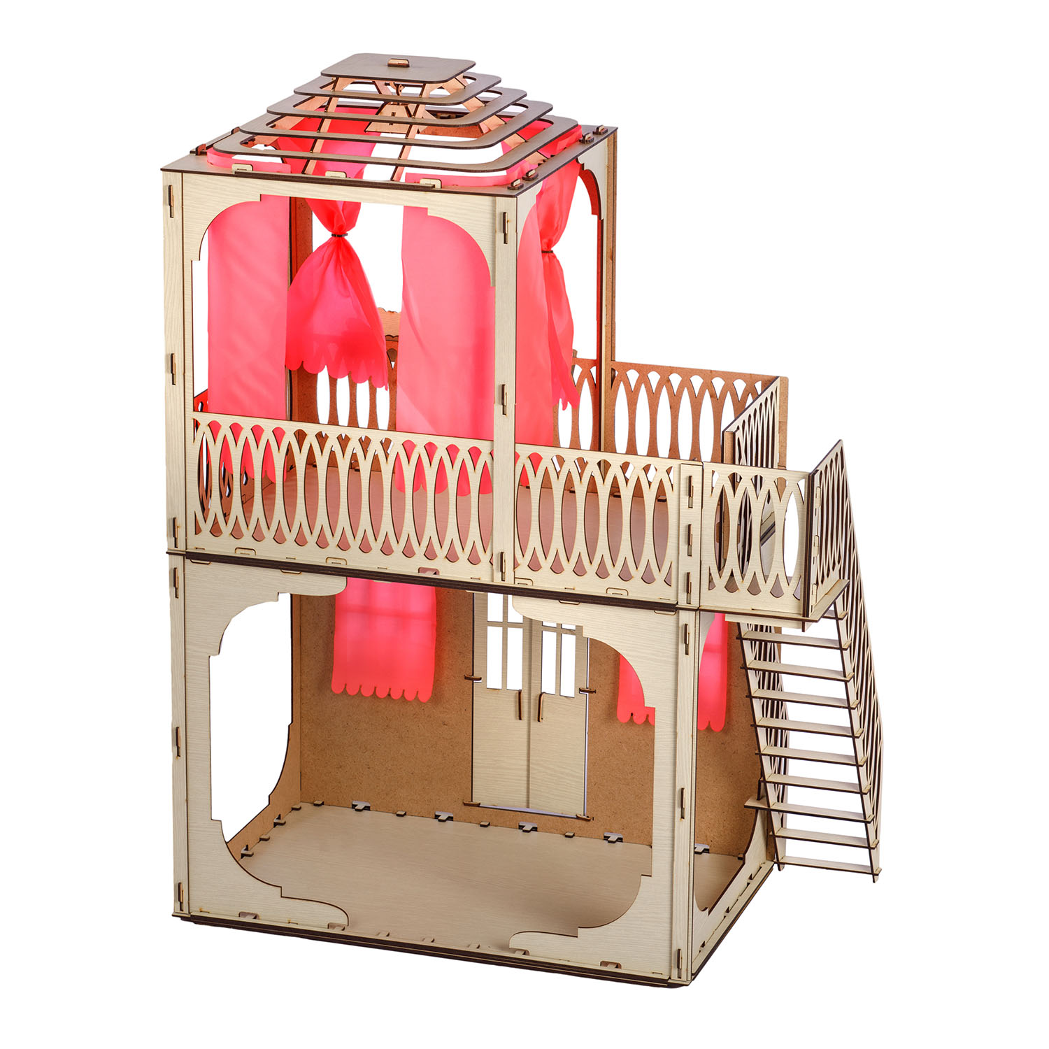 Кукольный домик является мечтой любой девочки. С этой игрушкой Ваша Принцесса сможет не только играть, но и творить, развивая творческие способности. Деревянный конструктор домик это еще и прекрасный набор для творчества для девочек. Сборка изделия происходит без применения клея, детали ровно стыкуются между собой, это занятие позволяет развить мелкую моторику, а также логику. Такие домики для кукол развивают также воображение и фантазию. Габариты собранного изделия: высота 83 см, длина 62 см, глубина 34 см. Высота потолков 35 см. ВНИМАНИЕ! мебель для кукол в данный набор не входит, но вы можете приобрести ее отдельно в нашем магазине. Подходит дом для кукол барби и лол до 30 см. Игрушка выполнена в цвете, как на картинке. Имеет два этажа, лестницу и открывающиеся двери. Играя в 3d конструктор дом ребенок придумывает сюжетно ролевые игры, примеряя на себя и игрушки различные социальные роли. К тому же эта сборная игрушка из дерева увлечет ребенка игрой на долгое время. Домик детский игровой - хороший оригинальный подарок дочке на день рождения, новый год или 8 марта, который точно приведет ее в восторг! Желаем Вам приятных покупок!