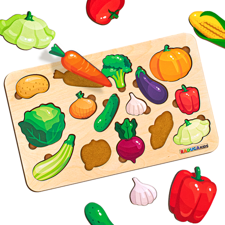 - Дерево хорошо обработано, без зазубрин. Овощи яркие, хорошо узнаваемые