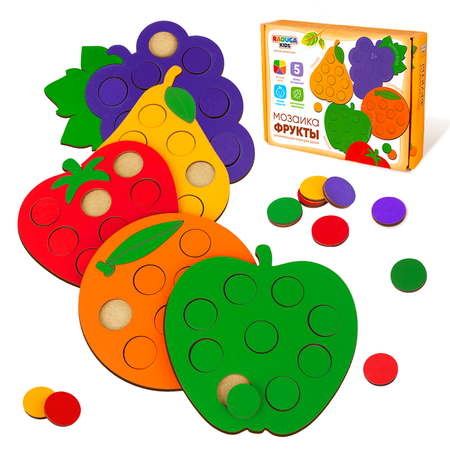 Деревянная мозаика Фрукты Радуга Кидс для малышей от 1,5 года. Игровое пособие по методике Монтессори помогает детям знакомиться с основными цветами, геометрическими фигурами и формами через игру. Благодаря крупным и безопасным деталям, подходит для маленьких ручек, развивая у ребёнка моторику и координацию движений. помогает детям сосредоточиться на процессе занятий без лишних сложностей. Во время игры дети учатся концентрации внимания на действиях.