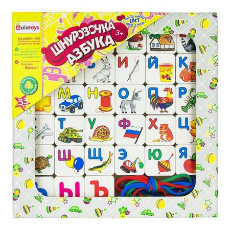 Шнуровка для малышей Алатойс Азбука детская деревянная развивающая (33 ДЕТАЛИ)