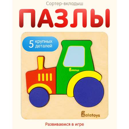 Пазл детский деревянный (5 деталей) Алатойс Сортер Монтессори "ТРАКТОР" для малышей