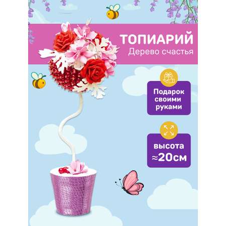 Волшебная мастерская представляет топиарий, или дерево счастья, которое можно «вырастить» своими руками. Большое количество расцветок, разнообразие соцветий и бутонов поможет создать свой волшебный сад дома. Все необходимое имеется в наборе, включая готовую вырубку цветов и листьев из фоамирана, пошаговую подробную инструкцию с фото. В процессе сборки у ребенка развивается мелкая моторика, практические навыки, необходимые в течение всей жизни: умение пользоваться ножницами, клеем, утюгом, объемное мышление, чувство композиции. Для взрослого - это своего рода антистресс, возможность расслабиться и погрузиться в мир детстства.