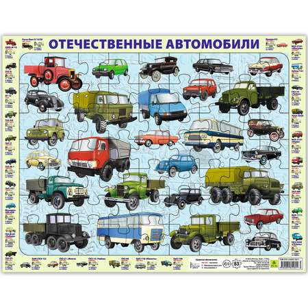 Пазл РУЗ Ко Детский на подложке. Отечественные автомобили. 36х28 см 63 элемента