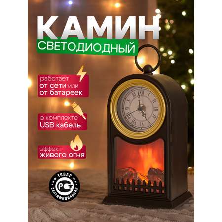 Светодиодный камин NEON-NIGHT «Старинные часы» USB + батарейки с эффектом живого огня