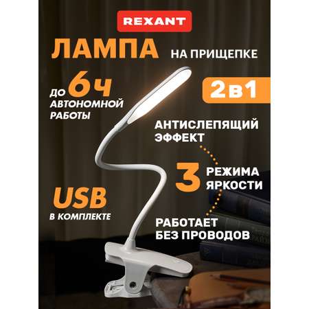 Настольный светильник REXANT светодиодный диммируемый заряжаемый на прищепке