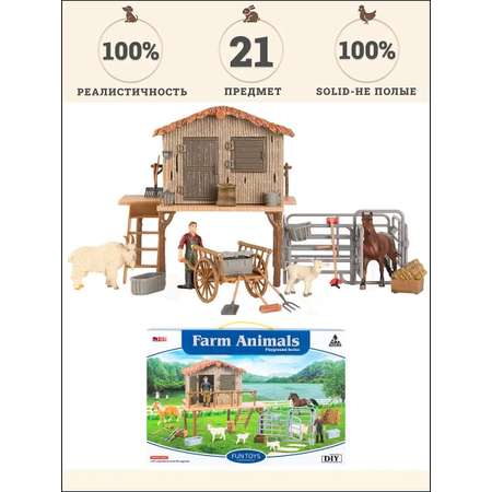 Набор фигурок и игрового домика являются уменьшенными копиями реальных животных, людей и зданий. Все предметы игрового набора выполнены из высококачественного литого цветного пластика.