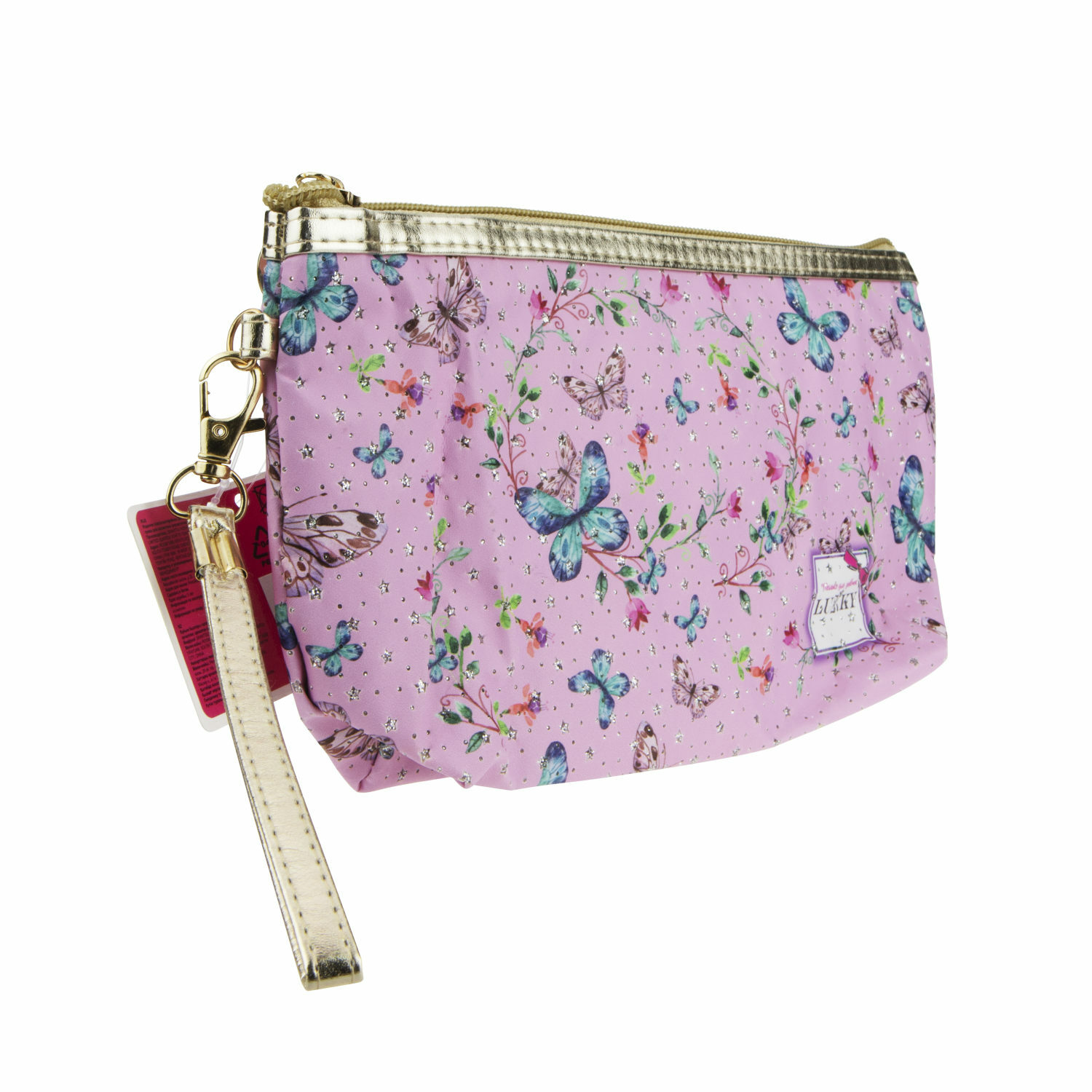 Косметичка от бренда LUKKY c уникальным принтом, в котором сразу узнаётся любимый брендля В комплекте идет золотистый ремешок, который можно при желании снять. Принт дополнен блестящими звёздочками. Косметичка- это небольшая сумочка для хранения косметики, аксессуаров, украшений, фломастеров, карандашей, мелких игрушек. Её можно использовать как пенал школьный или несессер. Она будет удобна в путешествиях и легко поместится в рюкзак или чемодан.