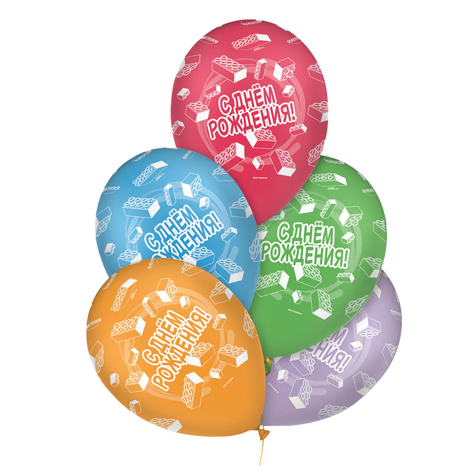 Набор шаров из натурального латекса. 5 шаров с шелкографическим рисунком «С Днем рождения», «Конструктор».