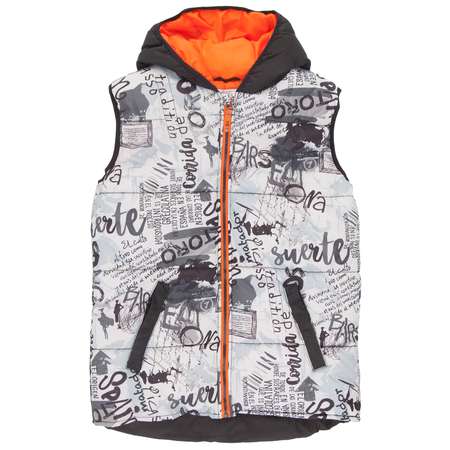 Жилет для мальчика простеган поперечной стежкой. Выполнен из однотонной и принтованной ткани дюспо с ветро-и водоотталкивающим покрытием. Подкладка из таффеты. Наполнитель - синтепон 200 грамм. Рекомендуется стирать в стиральной машинке, выбрав режим «деликатная стирка» при температуре не более 30 градусов. Конструктивные особенности: прямой, свободный покрой, удлиненная спинка округлой формы, прорезные карманы-листочки застегиваются на кнопку, застежка - открытая центральная молния с нижней ветрозащитной планкой и защитой подбородка, проймы и капюшон окантованы эластичной лентой. Декор: яркая подкладка, молния и подкладка контрастного цвета.