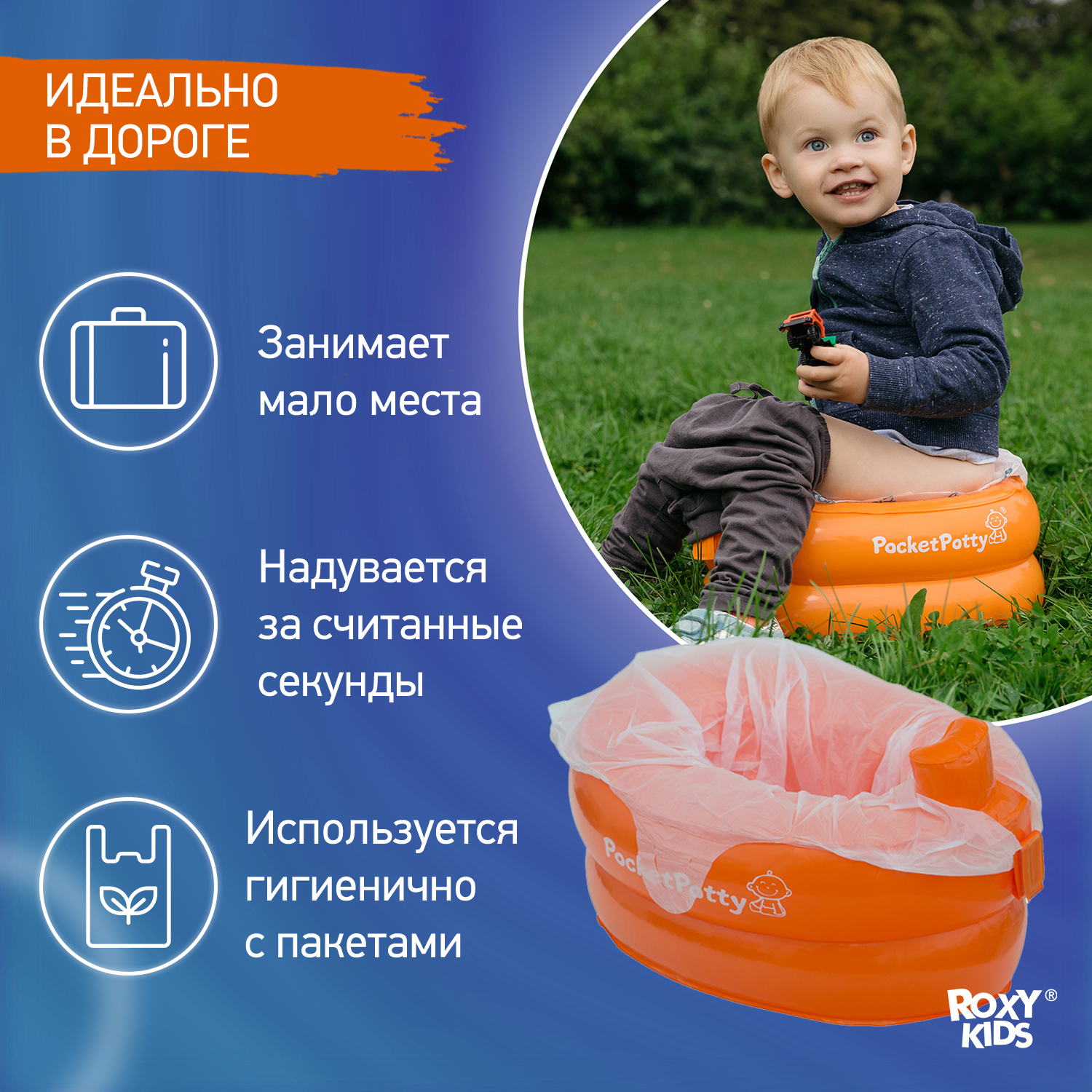 Горшок дорожный ROXY-KIDS надувной для детей PocketPotty цвет оранжевый