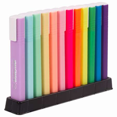 Набор текстовыделителей на подставке ЮНЛАНДИЯ COLORSTAR — идеальное решение для всех, кто ценит качественную канцелярию и стильные офисные принадлежности. Эти маркеры выделители предназначены для работы с текстом и таблицами на любой бумаге, включая факс-бумагу. Набор включает 12 цветов: 6 неоновых и 6 пастельных, что делает его универсальным для различных задач. Скошенный наконечник текстовыделителей обеспечивает толщину линии от 1 до 4 мм, позволяя выделить даже мелкий шрифт. Эти фломастеры для рисования и выделения текста обладают водной основой чернил, что предотвращает их высыхание без колпачка до 8 часов. Чернила быстро впитываются, предотвращая размазывание, а светоустойчивость позволяет сохранять яркость на солнце. Маркеры BRAUBERG для школы и офиса — это экономный расход и длина линии до 300 метров. Цвет корпуса и колпачка фломастеров соответствует цвету чернил. Эти милые маркеры станут отличным набором для творчества для девочек и мальчиков, любящих аниме и скетчинг, а яркие неоновые и нежные пастельные цвета неизменно будут радовать глаз. Набор текстовыделителей ЮНЛАНДИЯ станет незаменимым помощником в вашей каждодневной работе и творческих проектах.