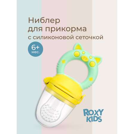 Ниблер ROXY-KIDS для прикорма с силиконовой сеточкой Piggy. Мятно-желтый