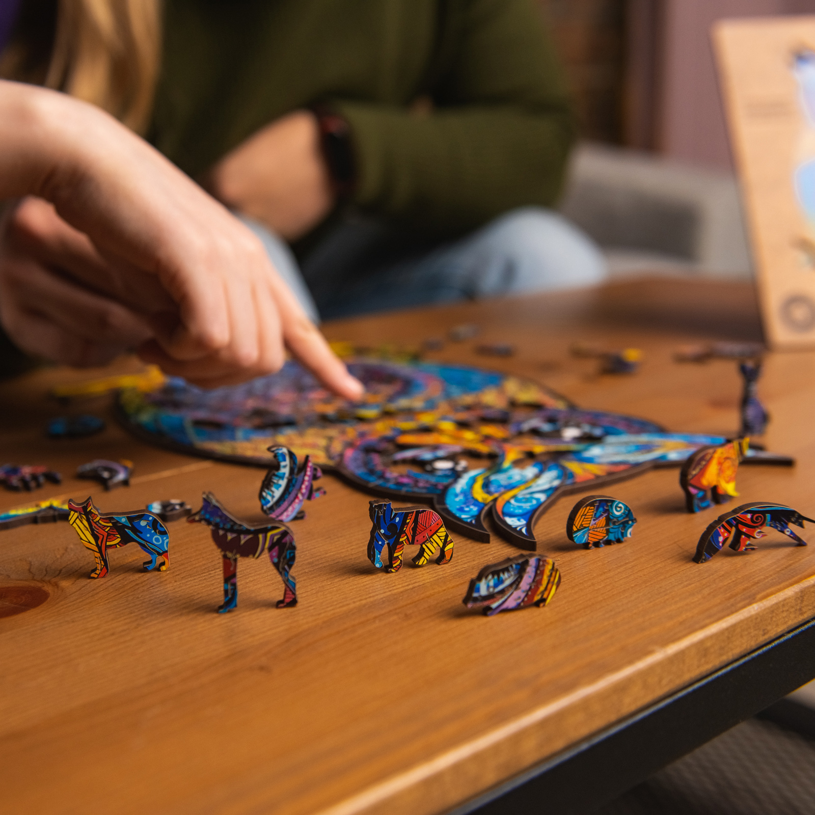 Каждый пазл в серии «Животные» бывает трех или четырех размеров. Чем больше размер — тем сложнее собрать пазл и тем интереснее история внутри него. Самые маленькие из них подобны трейлерам к потрясающим фильмам, а пазлы размера Royal Size — это целые путешествия с собственными неожиданными поворотами сюжета.
