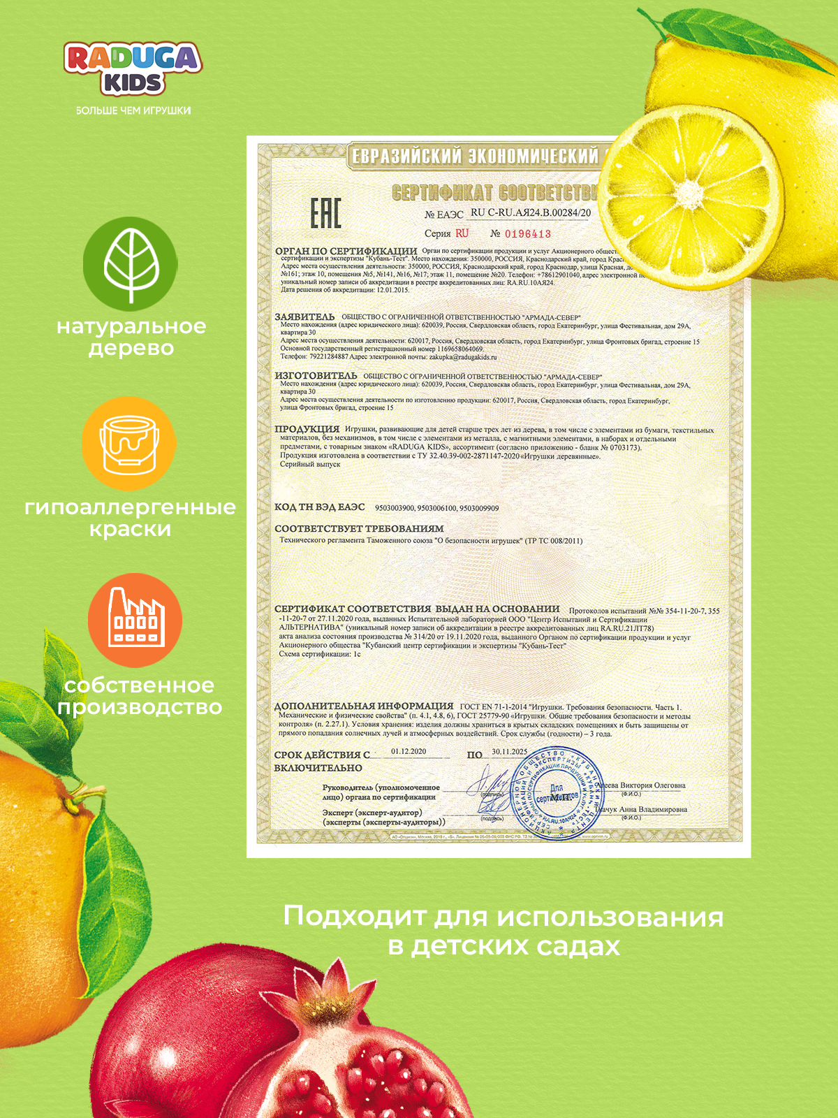 Макси пазлы Радуга Кидс созданы мамами, для своих малышей. Производство находится на Урале г. Екатеринбург. Продукция сертифицирована, подходит для коллективных подарков в детские сады, подготовительные дошкольные группы, монтессори пособие для логопедов и педагогов.