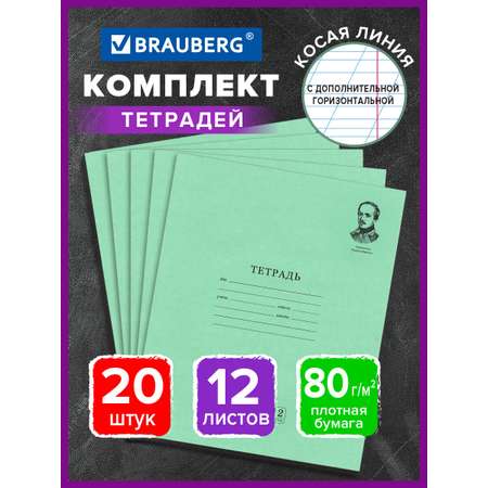Тетрадь Brauberg косая линейка 12 лист. 20 шт.