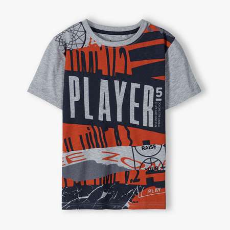 В футболке преобладает хлопковый трикотаж (плотностью 140gsm), который придает ткани мягкость и гарантирует, что кожа ребенка будет свободно дышать. Примесь полиэстера усиливает материал, поэтому вам не нужно беспокоиться о том, что вещь потеряет свой первоначальный вид после стирки или активных игр.Модель с короткими рукавами и округлым вырезом, свободного кроя с оригинальным принтом, который всегда будет создавать отличное настроение ребенку и окружающим. Нейтральный цвет позволит сочетать футболку с любыми шортами ,джинсами, шатанами или брюками.