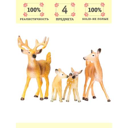 - В набор входят четыре фигурки разных оленей, что позволяет ребенку играть с разными персонажами и развивать свою фантазию.