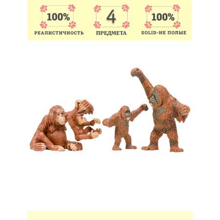 Фигурки семья орангутангов являются уменьшенными копиями реальных животных.