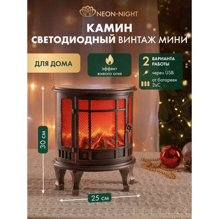 Светодиодный декоративный светильник-камин «Винтаж-мини» Neon-Night в бронзовом корпусе с имитацией горящих дров и эффектом живого огня дополнит интерьер детской комнаты. В отличие от настоящего огня, светодиодный камин не выделяет копоти и дыма, не выбрасывает искр и не несет опасности возгорания. Используемые светодиоды 3 LED имеют бесспорное преимущество перед лампами накаливания, поскольку их ресурс составляет 100 000 часов. Устройство эксплуатируется как постоянный элемент интерьера или в качестве оригинального рождественского декора. Бесшумный камин можно установить в детскую комнату ночью: изделие станет преградой перед боязнью темноты и сна в одиночестве без родителей. Мягкий естественный свет настроит ребенка на спокойный сон. Конструкция камина не имеет острых углов для обеспечения безопасности применения. Главное преимущество камина - возможность выбора источника питания: либо от 3-х батареек типа С, либо от устройств с разъемом USB, будь то переносной блок питания, компьютер, ноутбук или адаптер. Изделие независимо от розетки: легко перемещается из комнаты в комнату при необходимости. Корпус дополнен устойчивыми ножками для размещения камина на ровной горизонтальной поверхности. Комплектация включает все необходимое: камин, кабель USB, руководство по эксплуатации. Размер изделия (ВхШхГ): 30х25х13 см.