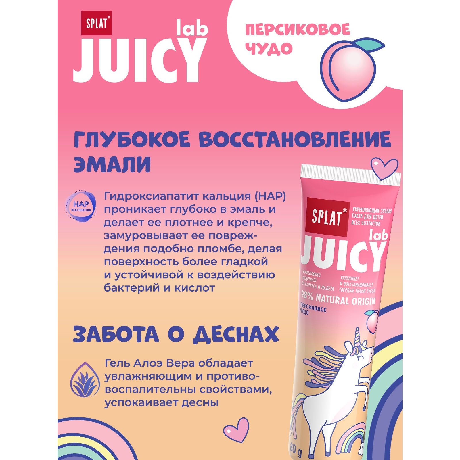 Интенсивно укрепляющая зубная паста JUICY LAB Персиковое чудо идеально подходит для уязвимой детской эмали.