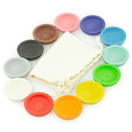 - 12 деревянных тарелок, диаметром 4 см - льняной мешочек для хранения Хорошо подходят для детей возрастом от 1,5 - 5 лет. Помогают развивать: - цветовосприятие и анализ - координацию движений - усидчивость - внимание - тактильность и мелкую моторику Набор совместим с другими наборами: Сортер «Шарики и стаканчики» Сортер " Шарики на доске" Игра Грибная поляна Набор «Цветные кубики + карточки» (размер 3см, 4см, 5см) Для сортировки удобно использовать подносХарактеристики