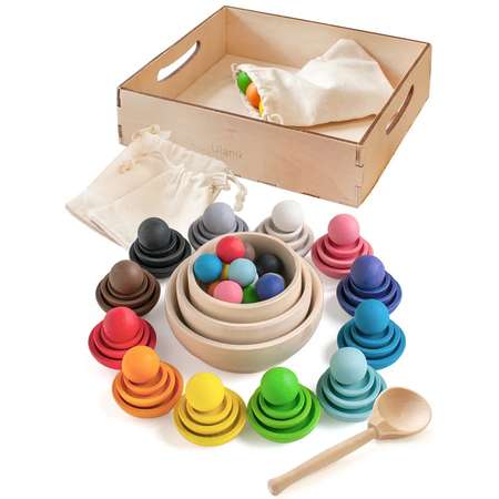 Детали игры выполнены из дерева липы. Цветные элементы окрашены немецким натуральным воском BIOFA, сертифицированным для детской игрушки.Обратите внимание: окрашенные натуральным воском элементы не рекомендуется мыть — лучше использовать сухую или чуть влажную ткань, чтобы протереть детали.