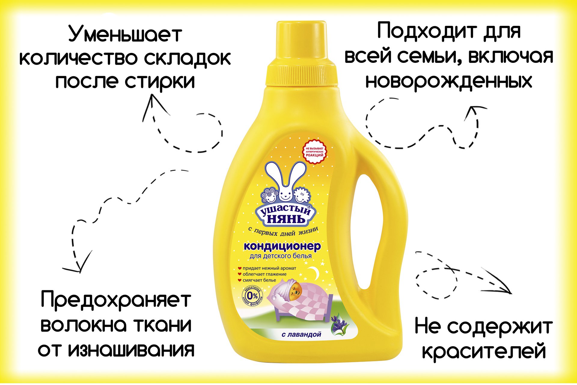 Кондиционер подходит для стирки детского белья, в том числе новорожденных. Придает детскому белью особенную мягкость, облегчает глажение, обладает антистатическим эффектом, придаёт белью приятный нежный аромат, уменьшает количество складок после стирки, предохраняет волокна ткани от изнашивания, улучшает гигроскопичность ткани (впитываемость влаги). Содержит экстракт лаванды, который известен своими успокаивающими и расслабляющими свойствами. Удобно дозируется с помощью колпачка-мерника. Благодаря двойным стенкам колпачка, после дозировки кондиционер стекает внутрь флакона, оставляя флакон чистым и сухим. Дерматологически протестирован. Не содержит красителей. Не вызывает аллергических реакций.