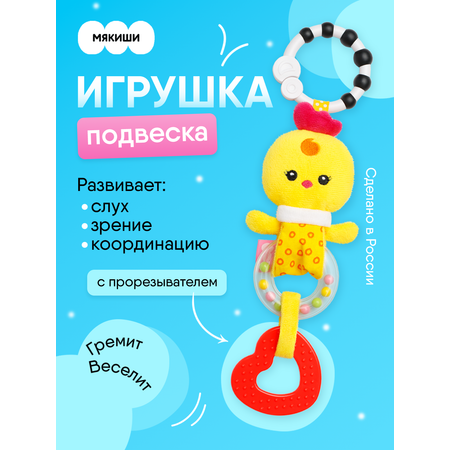 Игрушка подвеска Мякиши развивающая детская погремушка Цыплёнок Бро грызунок на коляску прогулку