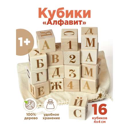 Кубики Ulanik деревянные с буквами и цифрами 16 шт